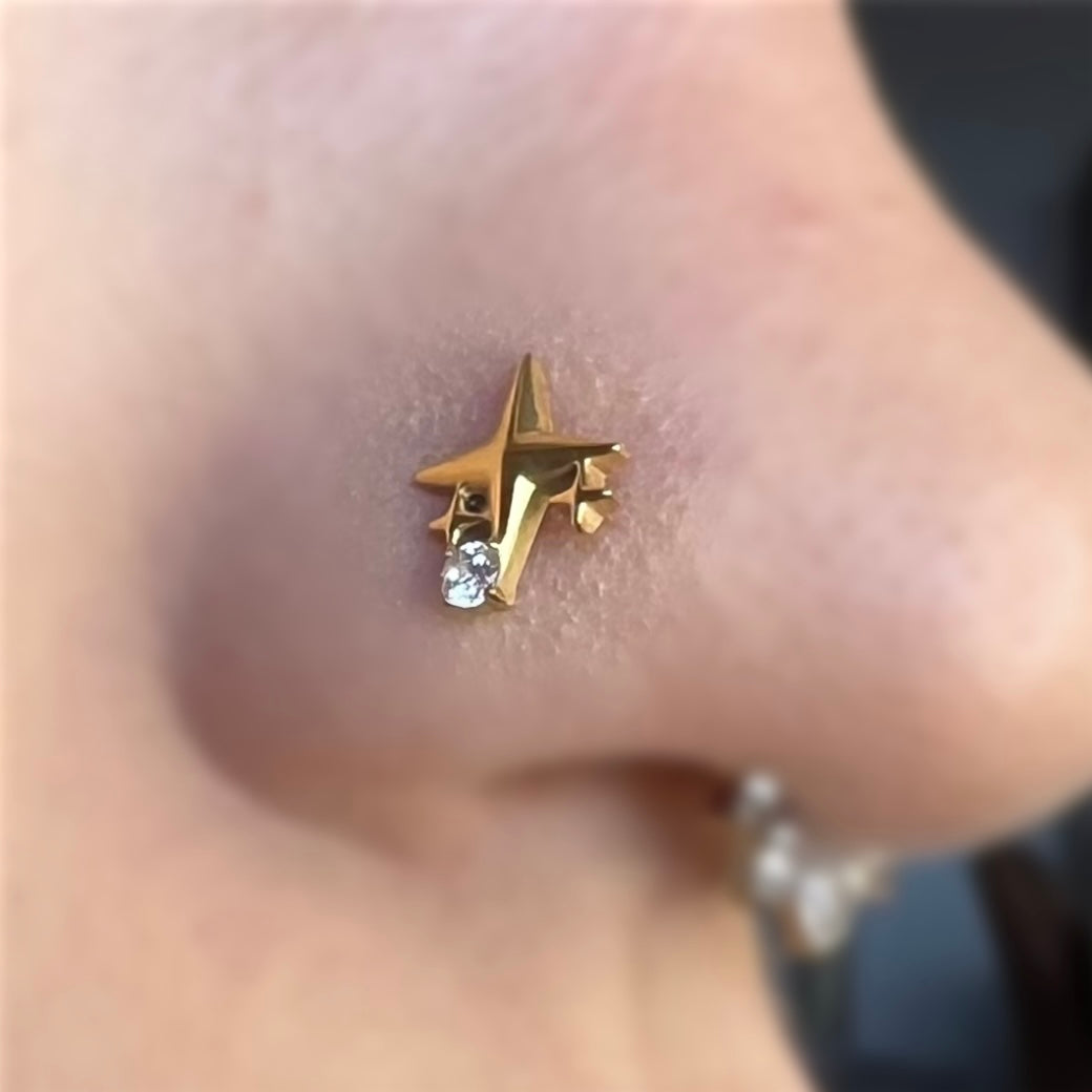 The Aconit Stud is expertly crafted from ASTM F136 titanium, ensuring exceptional biocompatibility and strength. It features an 18K gold plating for a luxurious, tarnish-resistant finish. Designed with an 8mm bar length and a 1.2mm diameter, this stud piercing offers a precise fit suitable for various ear placements. Combining durable materials with elegant design, the Iris Stud provides both comfort and lasting style for professional and everyday wear.