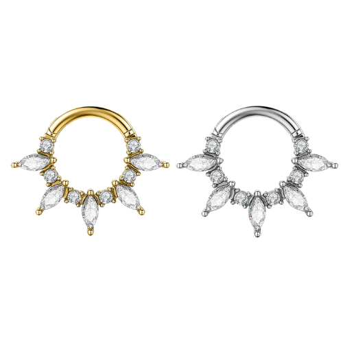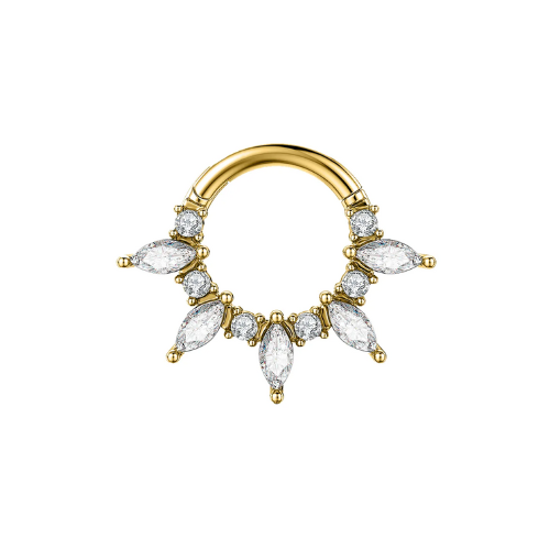 Découvrez l’anneau Acacia, un clicker en acier inoxydable plaqué or 18K qui associe durabilité et élégance. Avec son diamètre interne de 1,2 mm sur 8 mm, il offre confort optimal et maintien sécurisé. Idéal au quotidien, ce bijou hypoallergénique au fini raffiné convient parfaitement aux peaux sensibles et à celles qui recherchent un piercing de qualité.