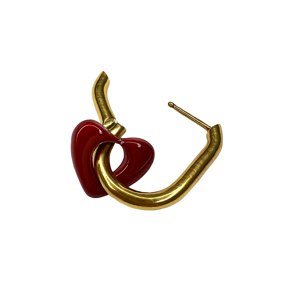 Les boucles d’oreilles Diane jouent la carte de la passion avec leur cœur rouge intense suspendu à un anneau ovale plaqué or 18K. Un design audacieux et féminin qui allie modernité et romantisme, parfait pour apporter une touche vibrante et affirmée à votre style.