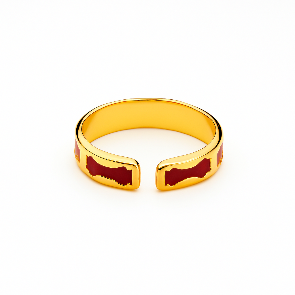 La Bague Eva séduit par son contraste vibrant entre l’or et les détails laqués rouge profond. Élégante et singulière, elle capture une énergie passionnée et intemporelle. Ajustable, elle s’adapte parfaitement à toutes les mains et devient une pièce forte de votre collection.