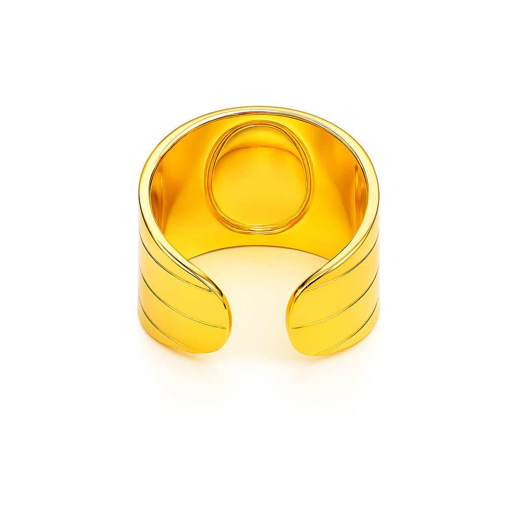 La bague Olivia allie puissance et raffinement grâce à son cabochon en œil-de-tigre, symbole de confiance et de protection. Sa monture dorée finement gravée met en valeur la profondeur lumineuse de la pierre. Élégante et affirmée, c’est une pièce unique qui attire la lumière et sublime votre main.