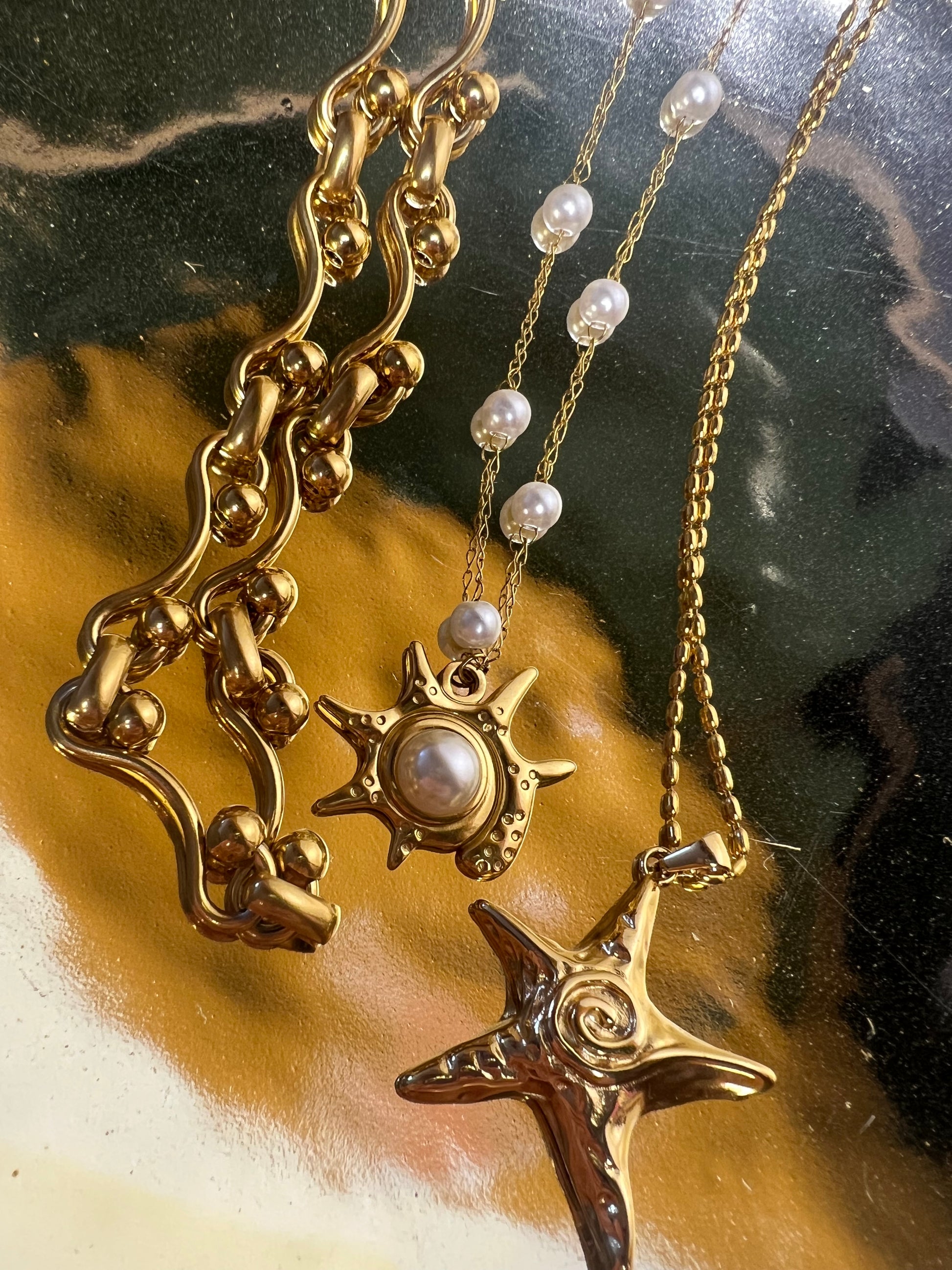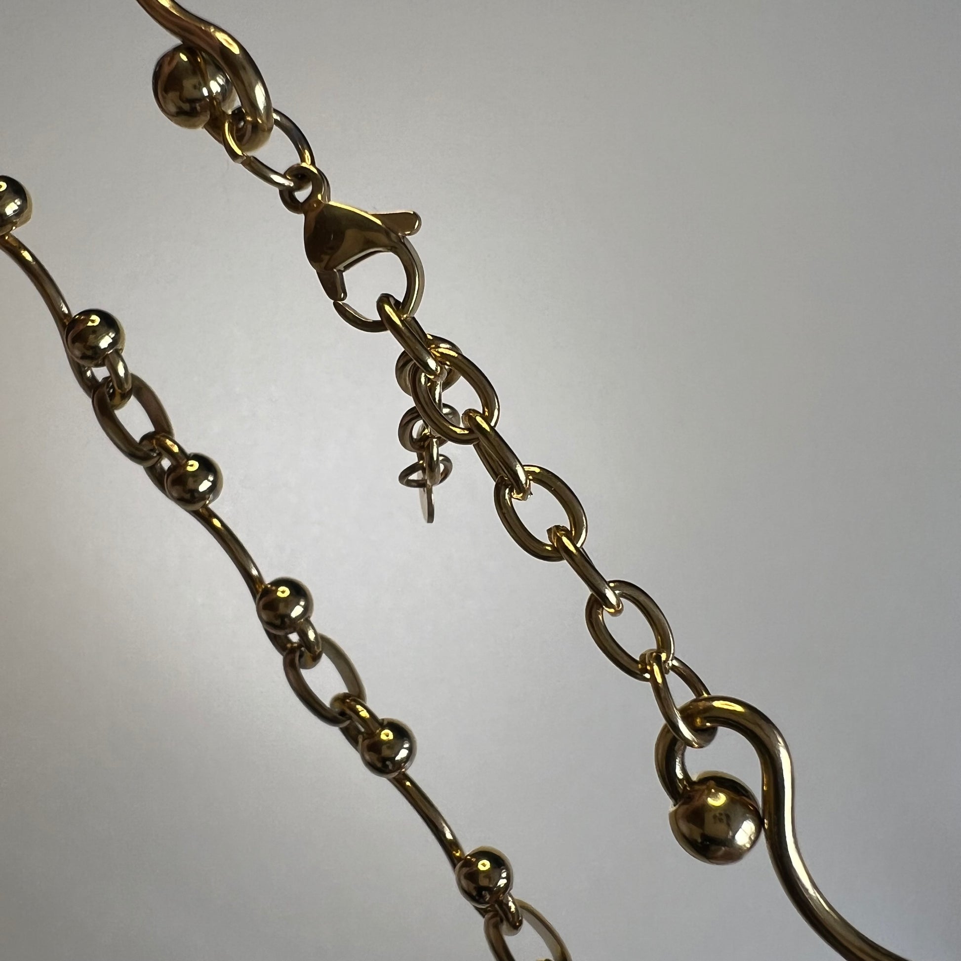 Olympe est une chaîne saisissante et dynamique, aux courbes sculptées et à la forme généreuse. Elle enlace le cou avec force et assurance — pensée pour les femmes qui ne se contentent pas d’arriver, mais font une véritable entrée. Audacieuse, sensuelle et empreinte de présence.