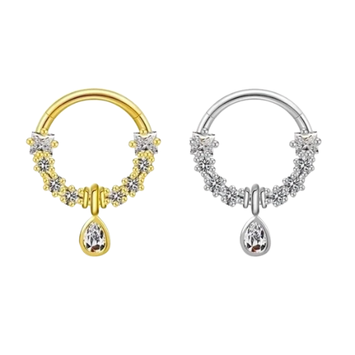 L’anneau Pivoine est un clicker raffiné qui associe sécurité et élégance. Conçu en titane de qualité médicale ASTM F136 et rehaussé d’un plaquage or 18K, il garantit confort et durabilité. Avec sa taille de 8 mm, il s’adapte parfaitement à un port quotidien tout en apportant une touche subtile de sophistication. Un indispensable pour celles qui recherchent un piercing fiable et élégant.